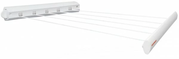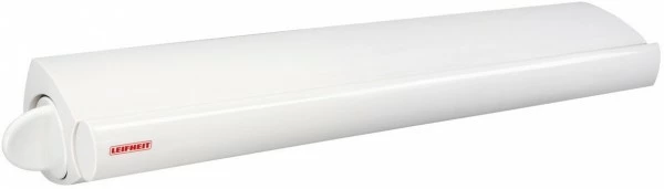 Hinter seinem zeitlos modernen Design versteckt sich eine erstaunliche Technik. Fünf reißfeste Polyesterleinen sind bis auf eine Länge von über 4 Metern stufenlos ausziehbar. Arretiert werden sie mit zwei Haken, die an der gegenüberliegenden Wand angebracht werden. Ob auf einem langen schmalen Balkon oder im Bad. So kann eine Gesamtlänge von 21 Meter erreicht werden, also zwei Waschmaschinenfüllungen. Mit dem Vorteil, dass der Leifheit Rollfix 210 nach seinem Einsatz so gut wie keinen Platz beansprucht. Einfach die Leinenleiste lösen und schon zieht die Aufrollautomatik die Leinen wieder ein. Damit die Leinen jederzeit fest gespannt sind und selbst beim Trocknen von Betttüchern nicht durchhängen, lassen sie sich einfach per Drehknopf nachziehen. Inklusive Montagematerial.